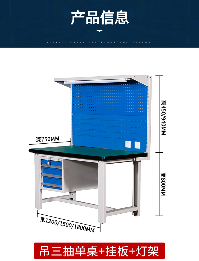 吊三抽单桌+挂板+灯架