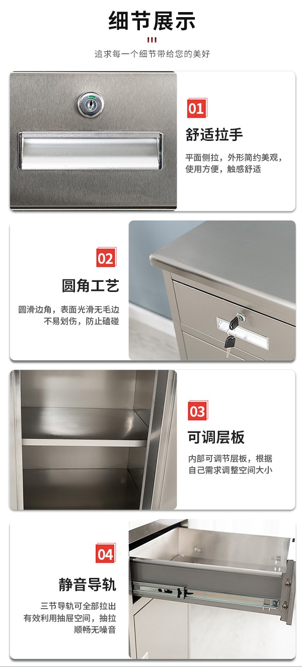 不锈钢矮柜三斗