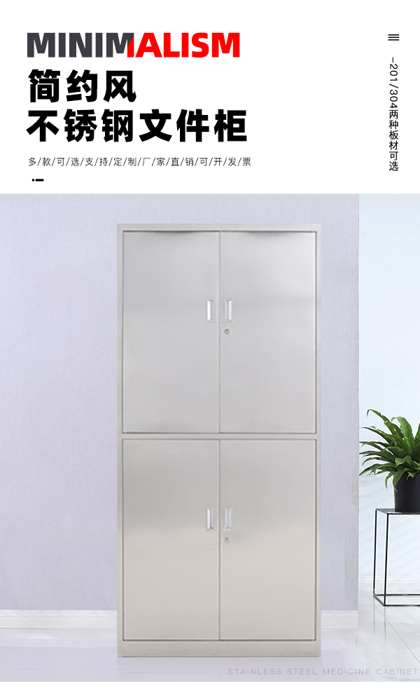 不锈钢文件柜通双节