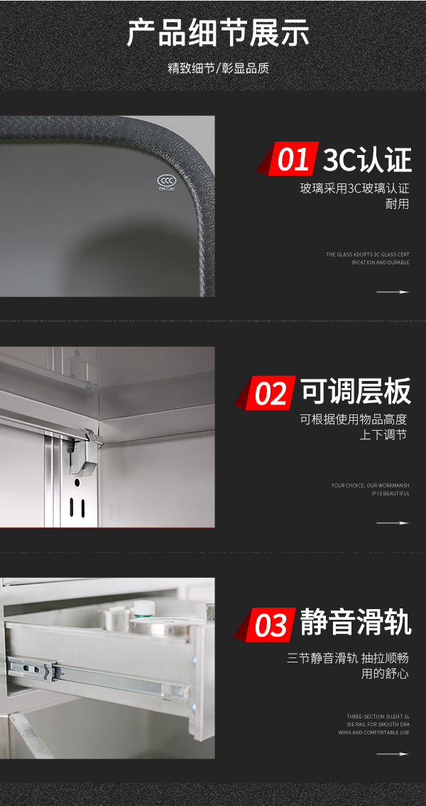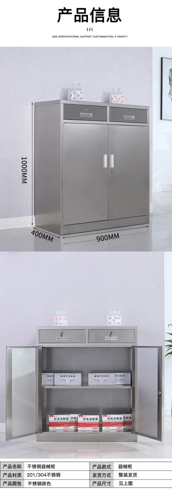 不锈钢西药柜二斗下节